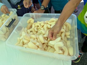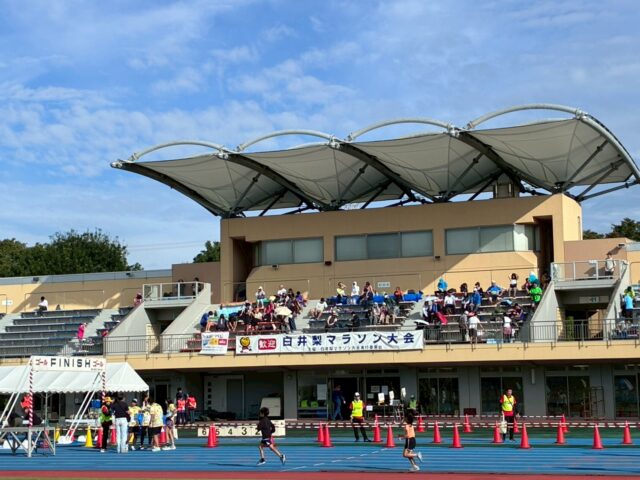 スタート地点は白井運動公園。梨畑を通る平坦なコースは走りやすく、沿道では地元の方々の温かい声援が途切れることなく続きました。エイドステーションでは梨の提供はなかったものの、スタート前とゴール後に白井市特産の梨が食べ放題!甘くみずみずしい味わいが、ランナーの疲れを癒してくれました。