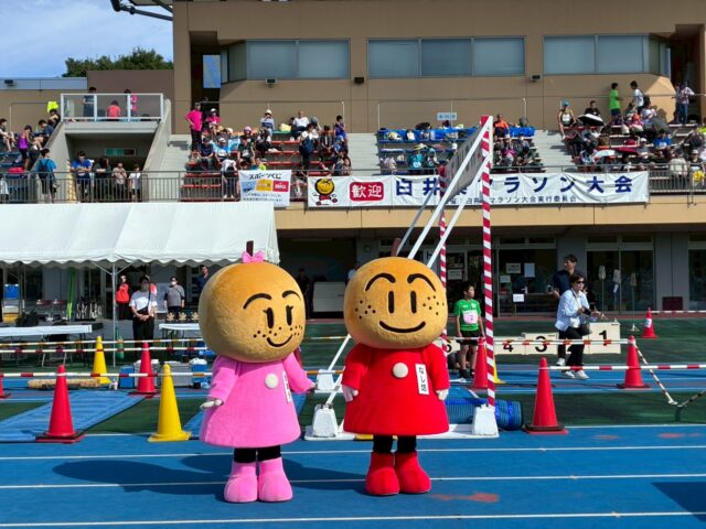 この大会の最大の魅力は、なんといっても「梨」!参加賞には梨関連グッズが用意され、走るだけでなく白井市の梨文化を体感できるイベントでした。さらに、白井市の広報キャラクター「なし坊」と「かおり」も会場に登場し、写真撮影やハイタッチでランナーたちを元気いっぱいに応援!会場は笑顔に包まれていました。