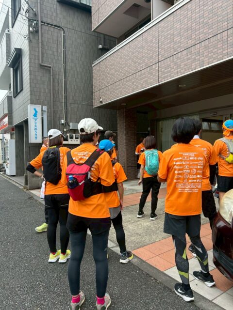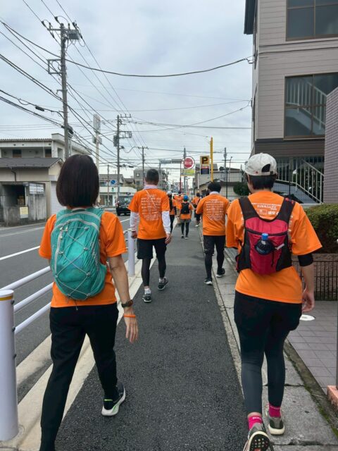 私たち「浦安ハーフを走る会」はこのうちいくつかのコースを担当し、オレンジ色のタスキを地域の道沿いへとつなぎました。