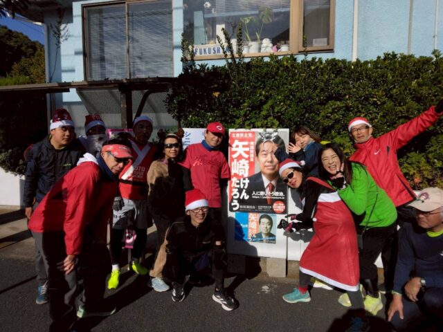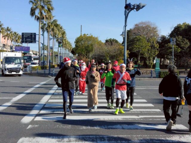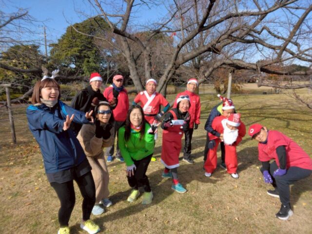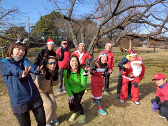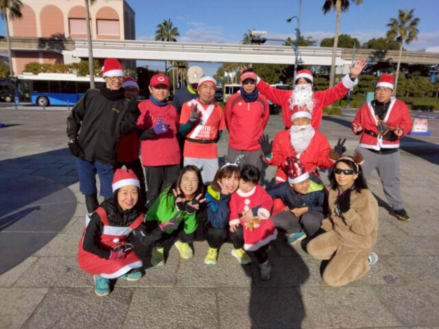 赤や緑の衣装に鈴の音を響かせながらのランは、走り出した瞬間から笑顔があふれ、自然と会話も弾むアットホームな雰囲気。沿道の方々も思わず足を止めて見てくれる、季節感たっぷりのランとなりました。