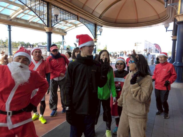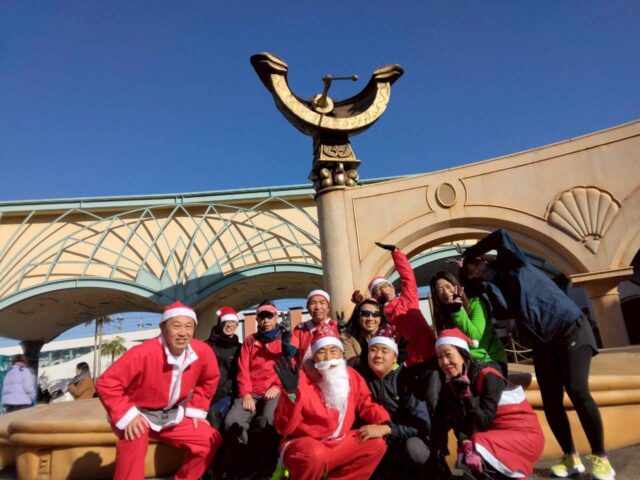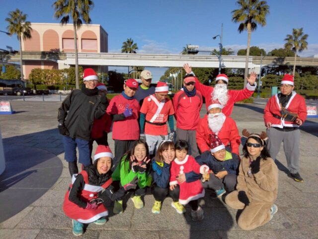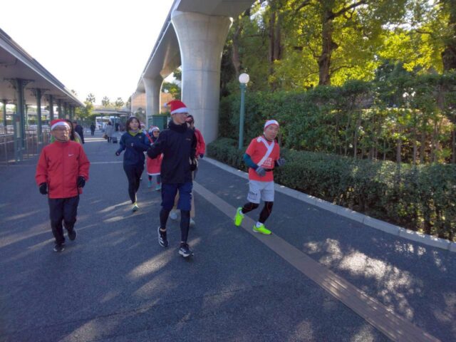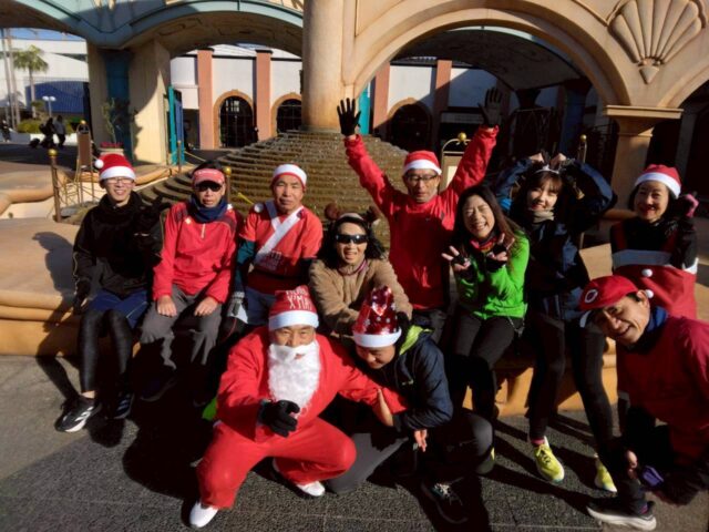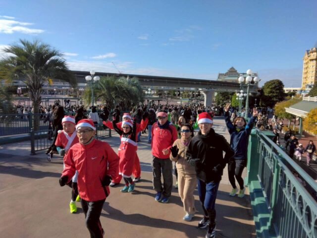 本日、浦安ハーフを走る会のメンバー約10名が、サンタクロースやトナカイ、クリスマスツリーの衣装に身を包み、舞浜エリアを楽しくランニングしました。