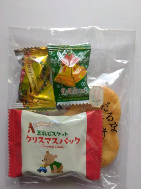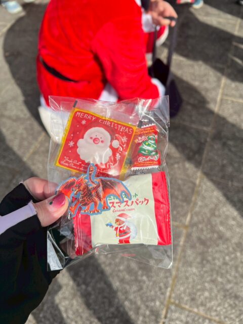 とってもかわいいちびっこサンタクロースから、お菓子のプレゼントをいただき、メンバー一同ほっこり。