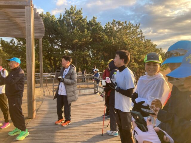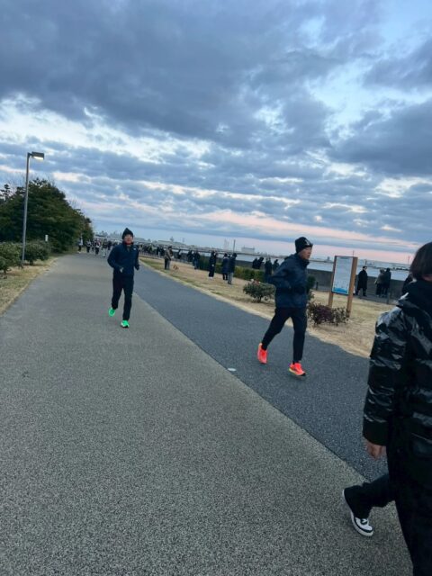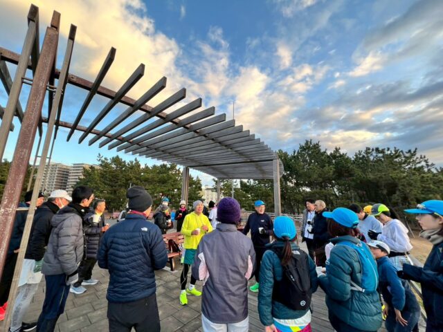 まだ夜明け前の静けさの中、ランナーたちは集合。手足の先まで冷たさを感じる寒さでしたが、そんな寒さも仲間との会話や笑顔であっという間に吹き飛びました。