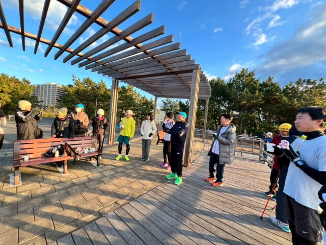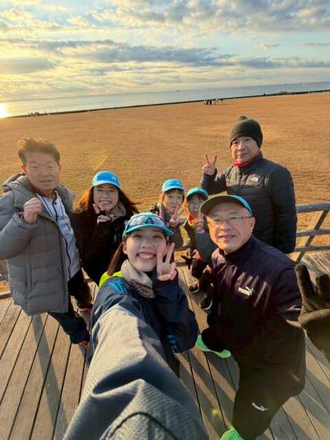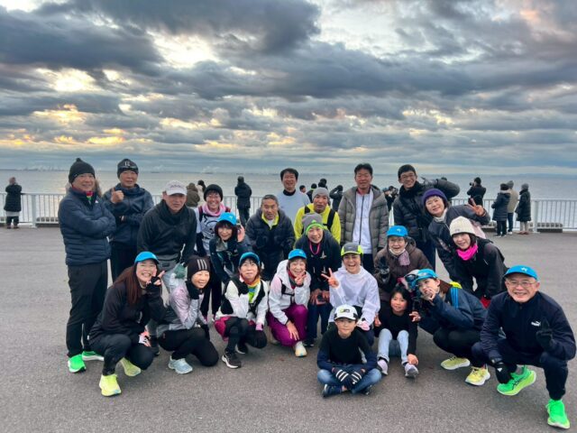 2026年元日、浦安ハーフを走る会のメンバー約25名+ワンちゃんが、笑顔と熱気あふれる「初日の出ラン」に参加しました!浦安オリエンタルホテル前を早朝6:30に元気にスタートし、寒さに震えながらも一歩一歩、新年のスタートを走り抜けました。