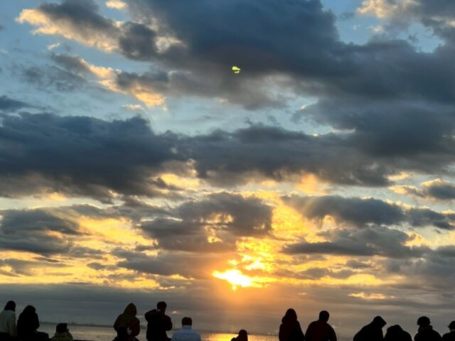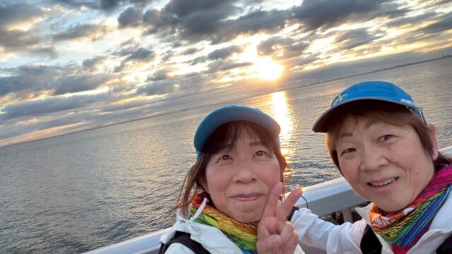 当日は雲が多く、くっきりとした日の出とはなりませんでしたが、雲の隙間から差し込む光が水面に反射し、幻想的な景色が広がりました。