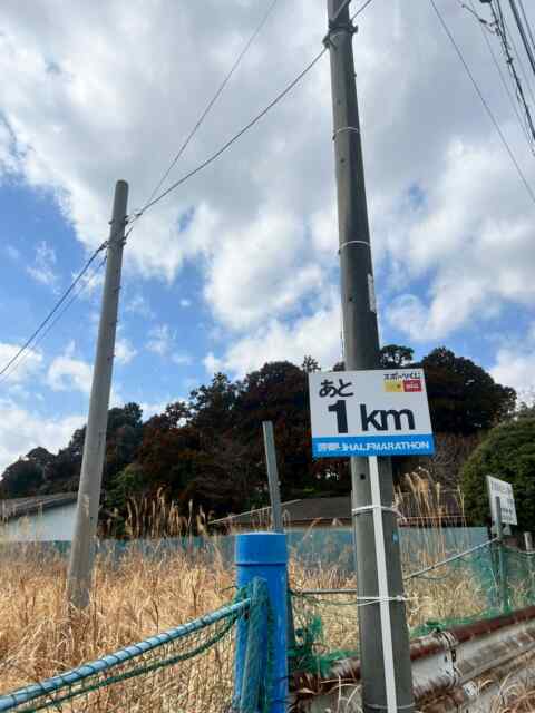 さらに「残り1km」の看板で最後の力を振り絞ります。