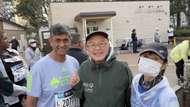 世界大会ならではの光景。実は毎年、多くの著名人が参加しているのも東京マラソンの特徴です。